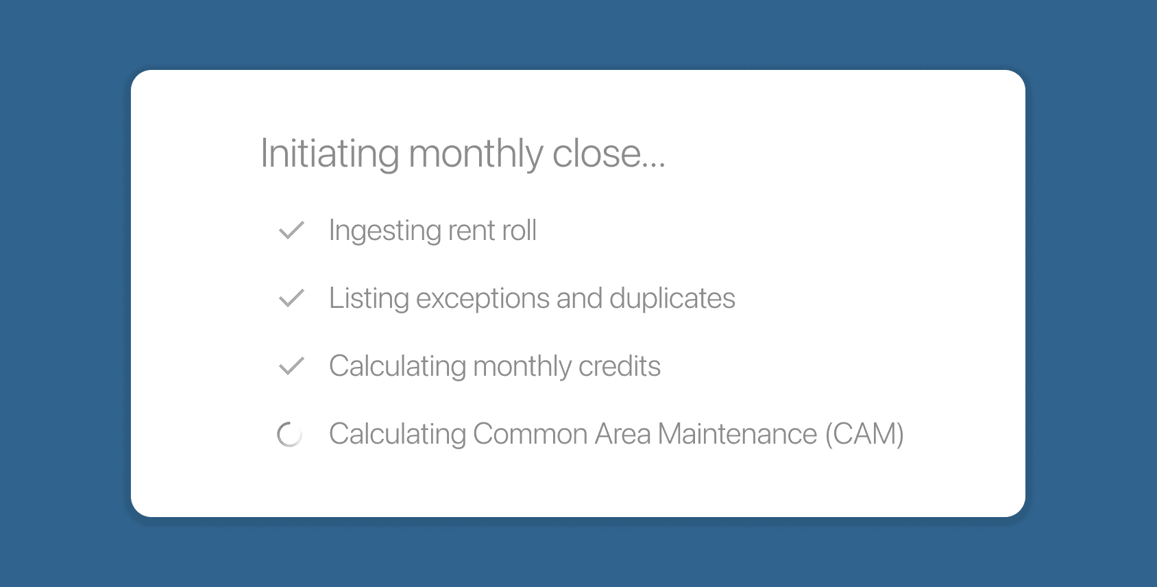Our platform is designed to support the complex accounting needs of both residential and commercial portfolios and supports features like CAM reconciliation and multi-entity accounting.