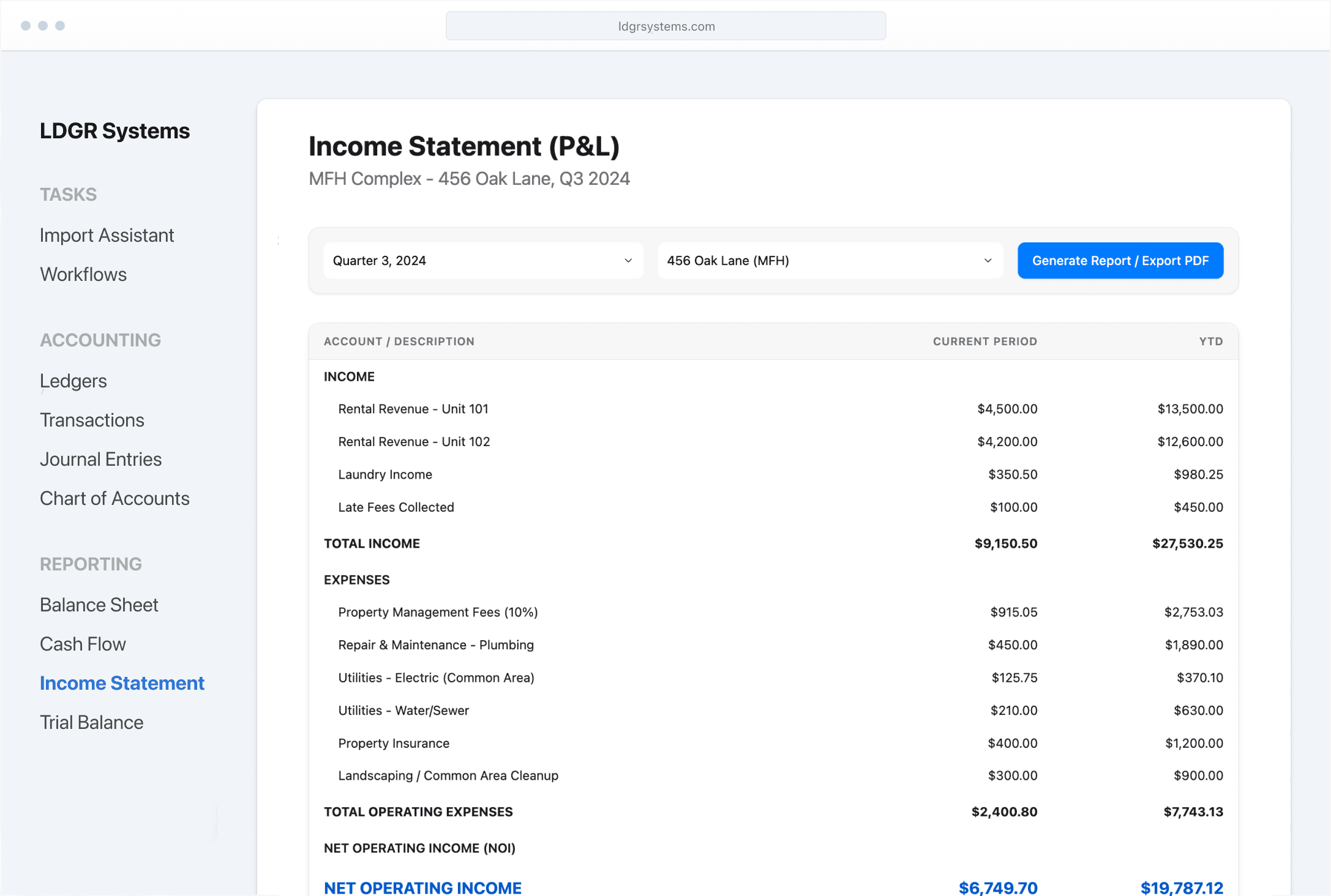 Yes, LDGR Systems' platform allows users to create customized financial statements, owner reports, and compliance documents tailored to specific needs.